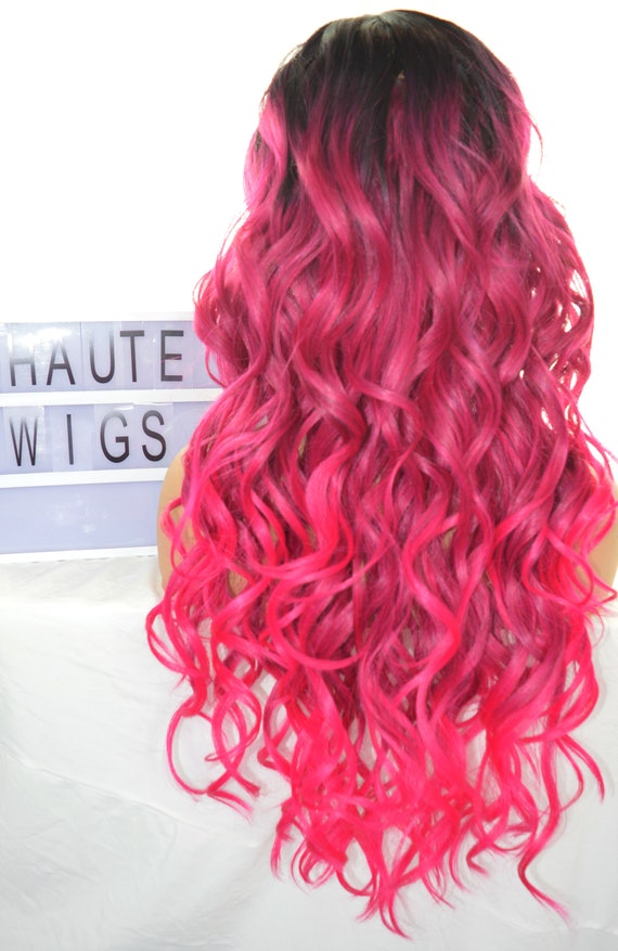 Curly Long Ombre Vibrant Bright Fuchsia Neon Shocking Pink Etsy Uk