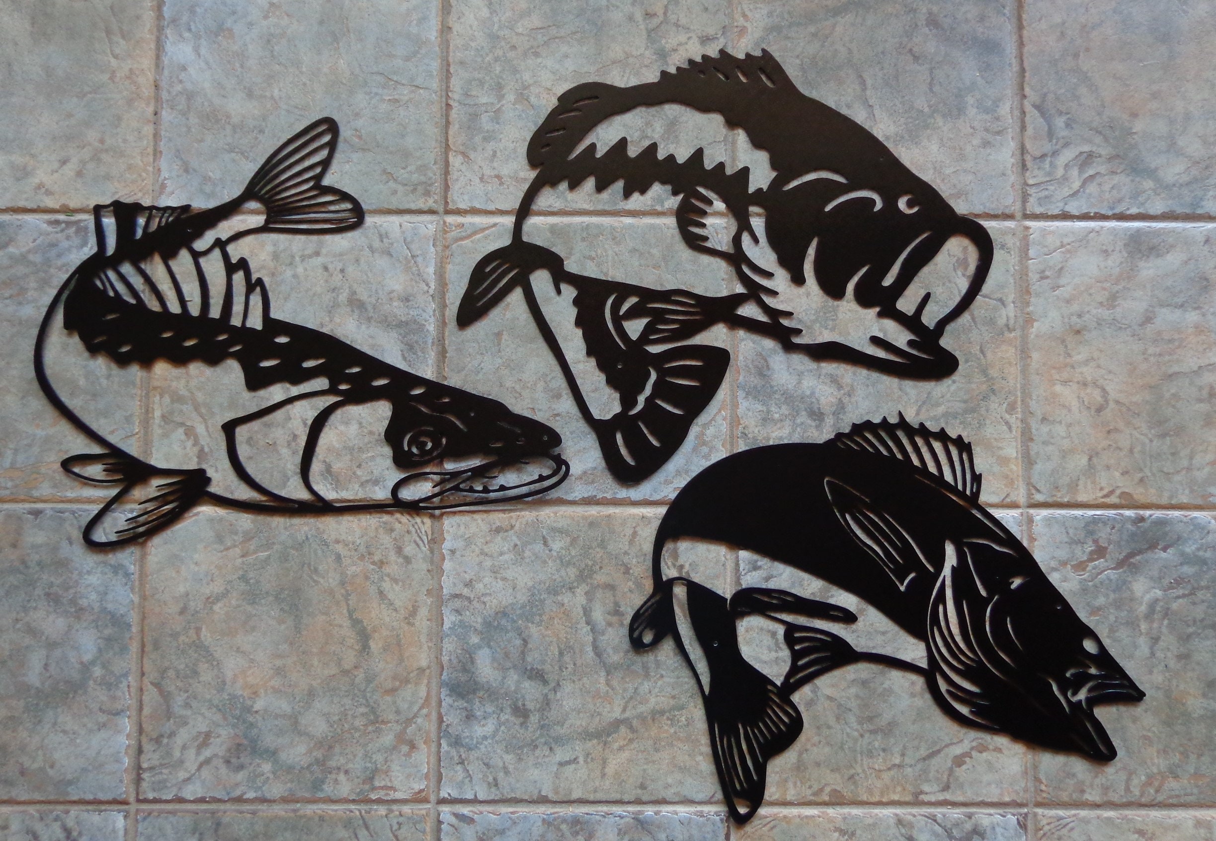 Set Of 3 Fish Bass Muskie Walleye Plasma Cut Metal Wall Art Etsy De