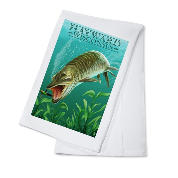 Hayward Wisconsin Muskie Lantern Press Poster 100 Cotton Kitchen Towel Walmart Com